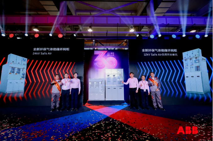 庆典现场,ABB重磅发布两款全新环保产品:24kV SafeAir 环保气体绝缘环网柜与紧凑型开关柜、12kV SafeAir环保气体绝缘负荷开关单元。两款产品进一步丰富了ABB无六氟化硫技术产品线,与中国新型电力系统目标和全球绿色发展标准高度契合。