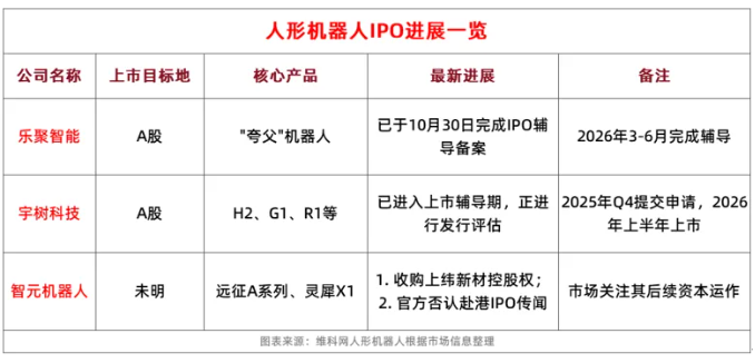 "夸父"的创造者乐聚智能(深圳)股份有限公司(以下简称“乐聚智能”)此前于10月30日正式在深圳证监局办理IPO辅导备案;而宇树科技已抢先启动上市计划,预计第四季度提交IPO申请...国内知名人形机器人企业几乎在同一时间窗口冲向资本市场,"谁先上市、谁定标杆"的竞赛格局悄然上演。