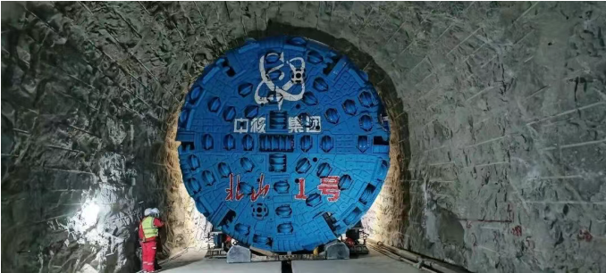 “北山1号”TBM于2022年9月在长沙下线,经3000公里长途运输,于2022年12月30日开始掘进,在长距离极完整硬岩工况下创造了日进尺21.6米和月进尺342米的进尺佳绩,实现了大坡度下坡螺旋和下坡掘进工况下TBM的自动掘进,成功完成全部7个255米小半径转弯段和8个直线段的施工任务,并于2025年12月26日完成7公里掘进任务实现隧道贯通。